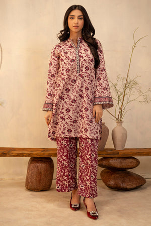 Zellbury Unstitched Printed Lawn 2-Piece Suit - Burgandy