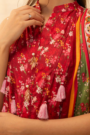 Zellbury Unstitched Printed Lawn 2-Piece Suit - Red