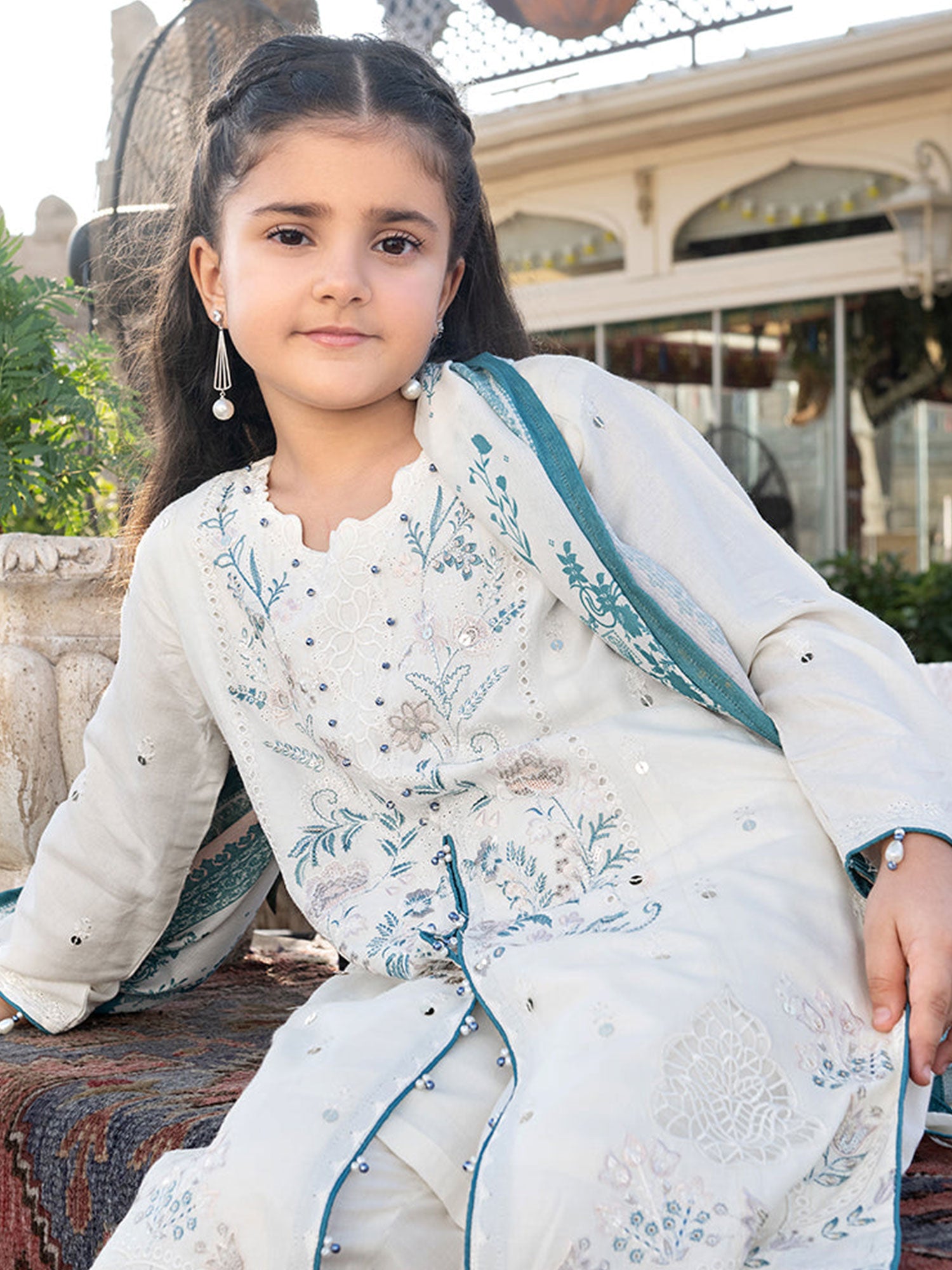 Ally's Kids Ivory Embroidered Linen Suit (AL-1116)