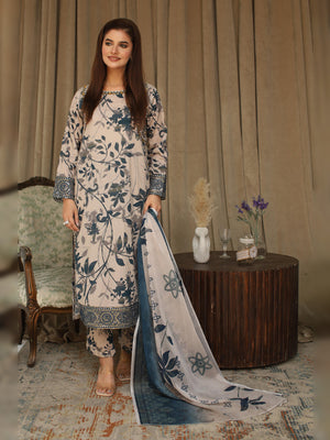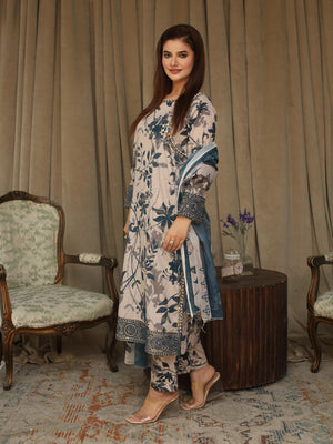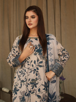 Beige & Teal Digital Lawn-Cotton 3-Piece Suit