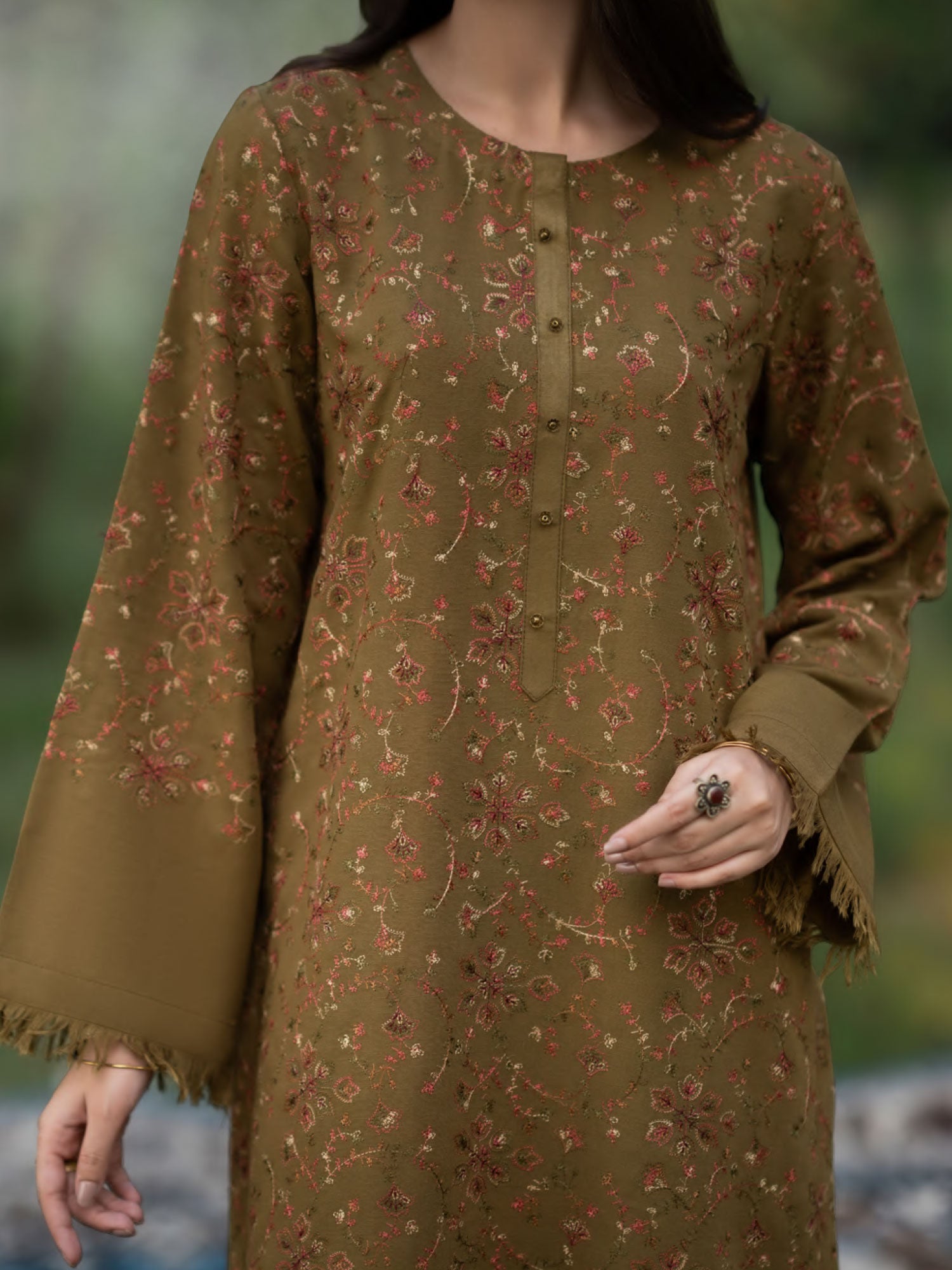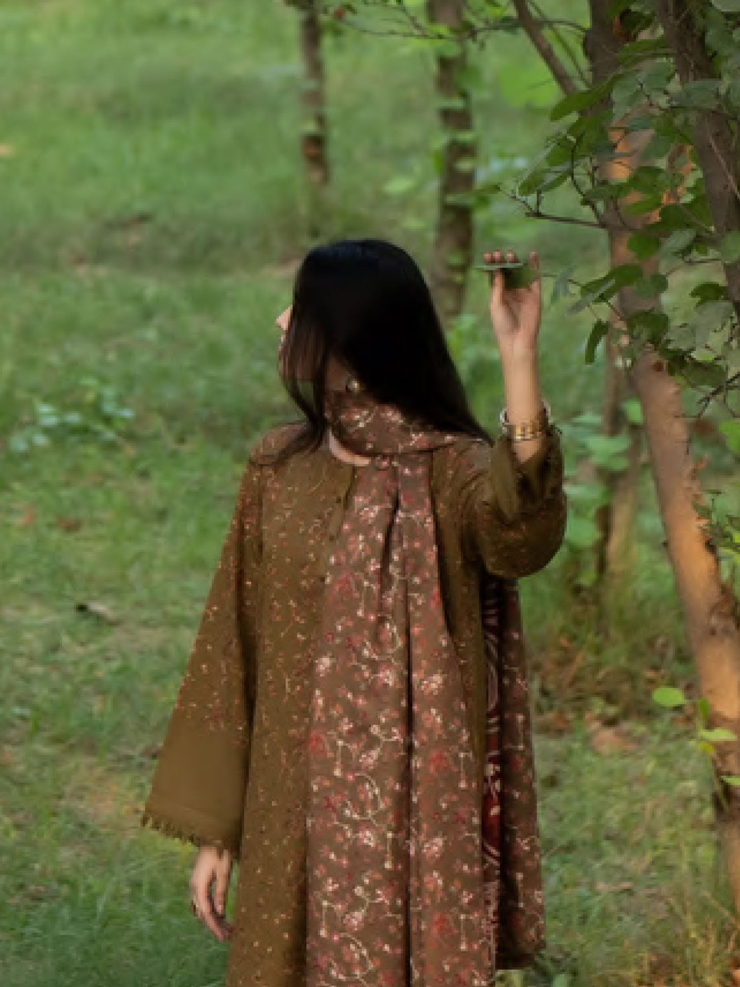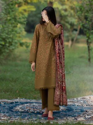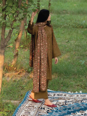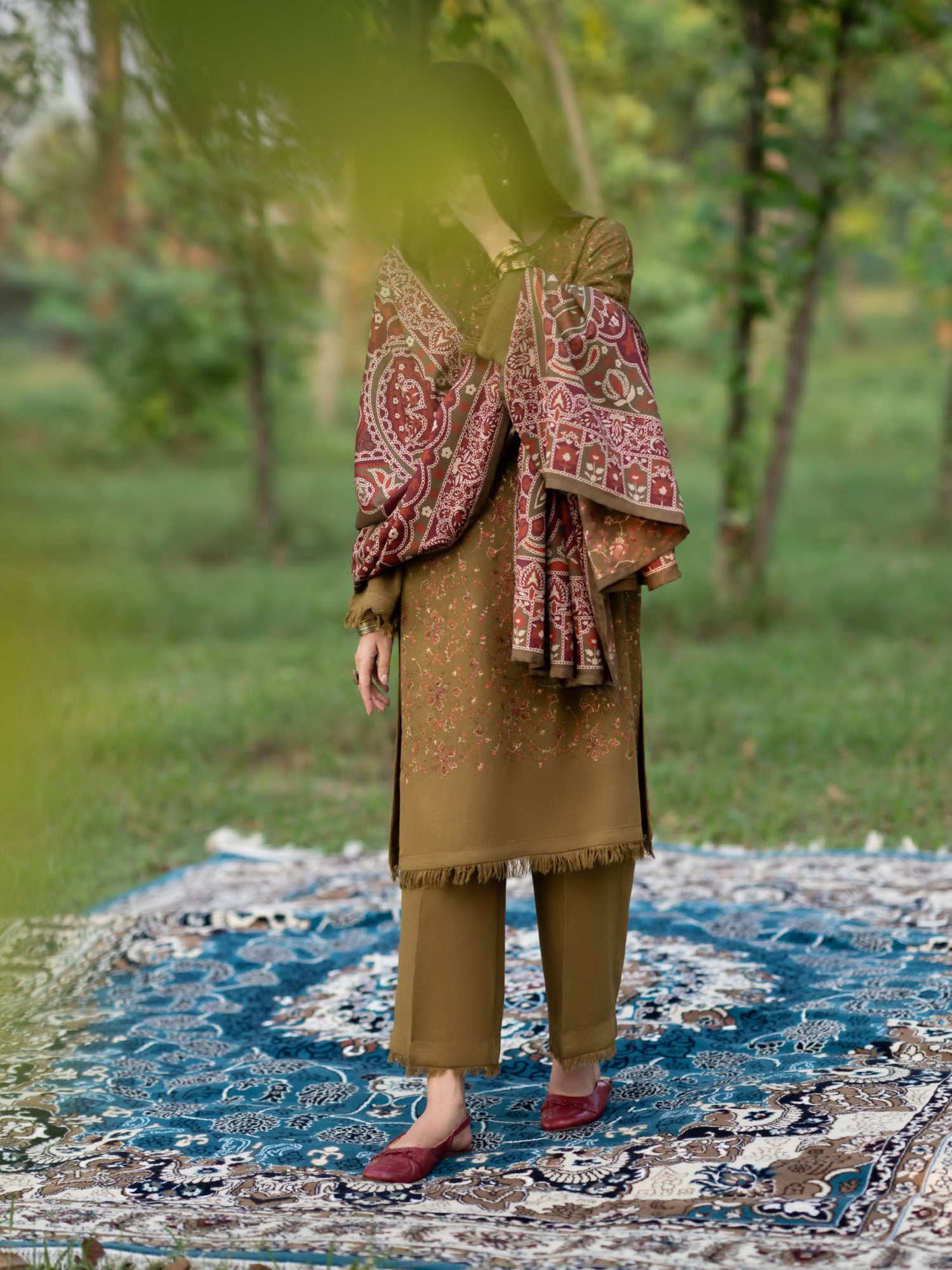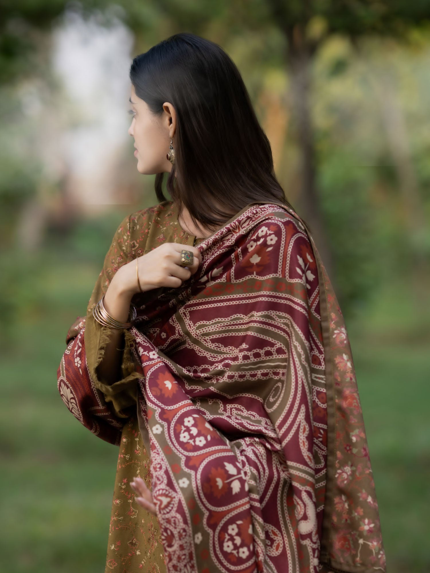 Casual Lite "Khunki" Premium Dhanak Suit with Pashmina Shawl - Mehndi