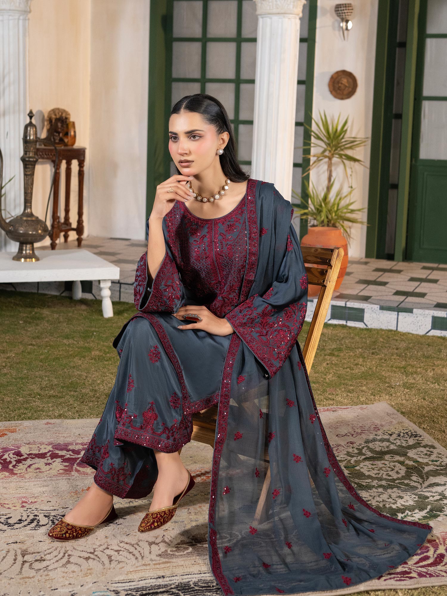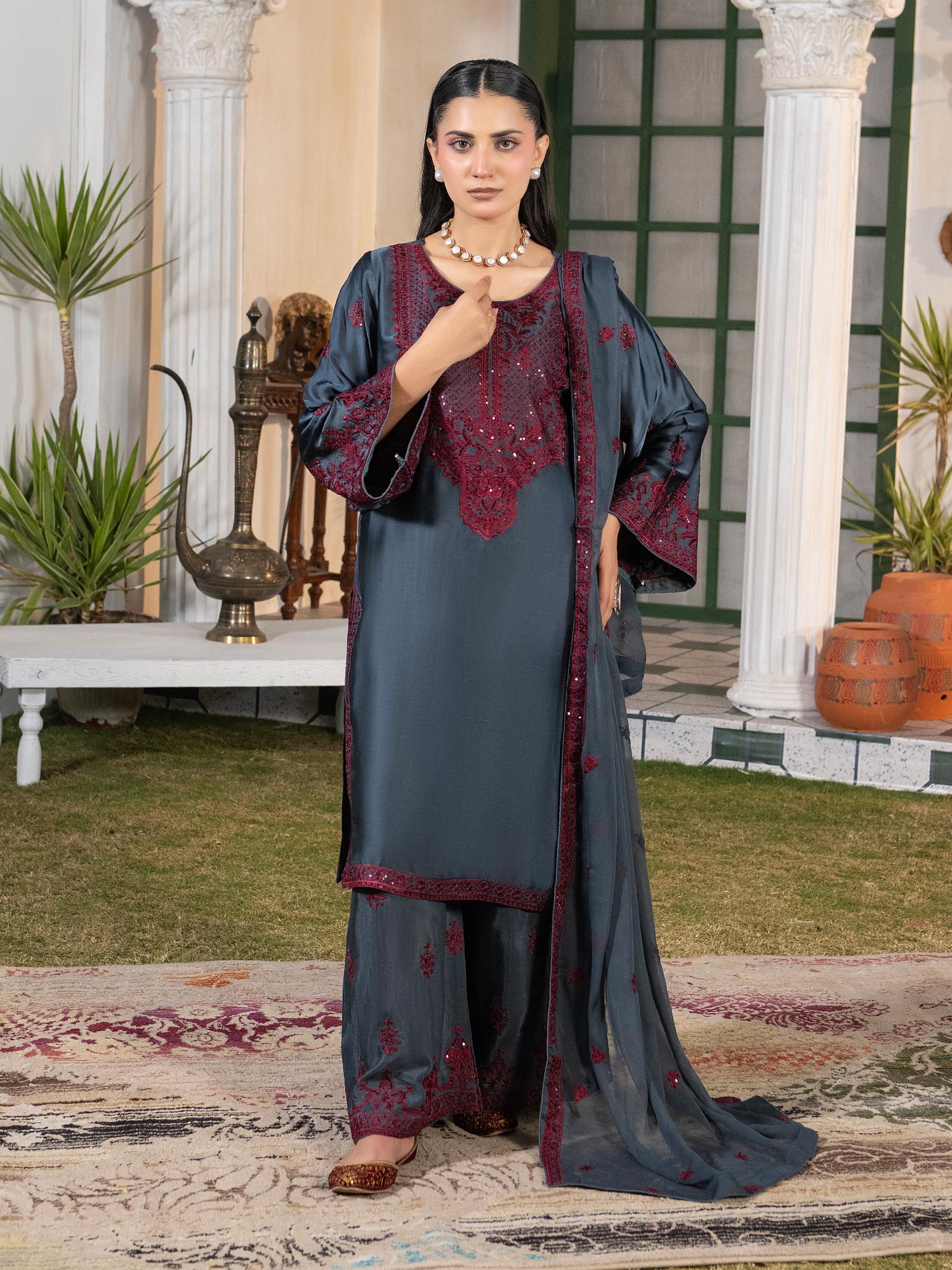 - Embroidered chiffon dupatta