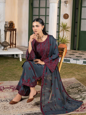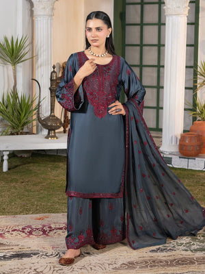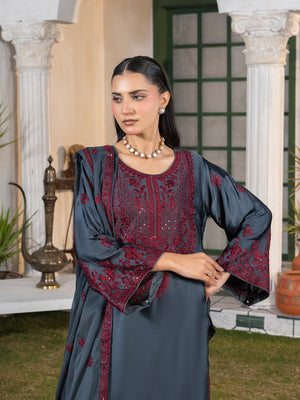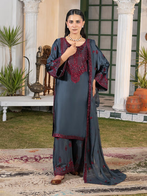 Charcoal Grey Embroidered Lux Silk Suit