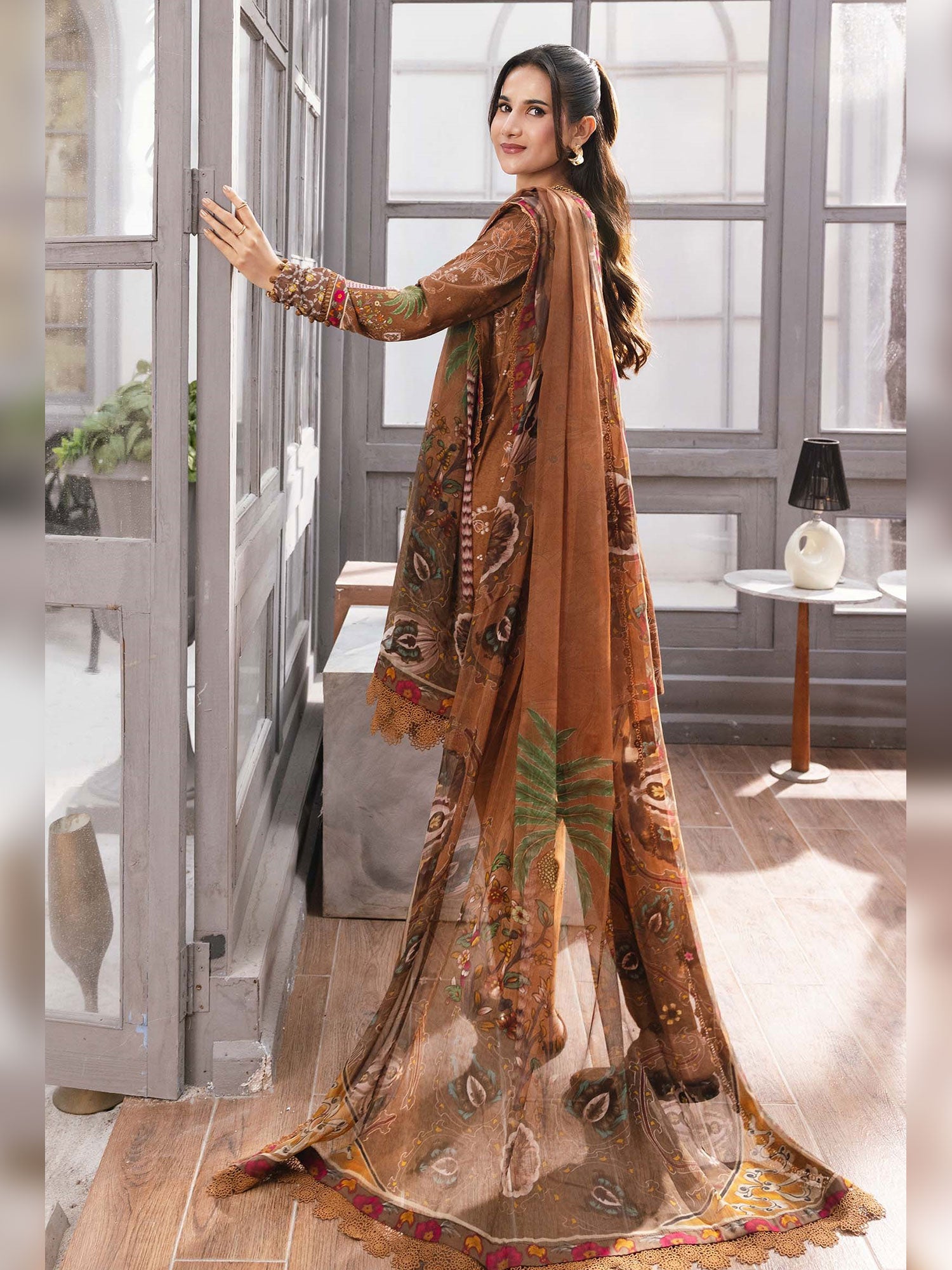 Maria.B Unstitched Marina Twill Suit (MB-CUS25-1106B) - Brown