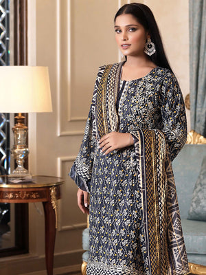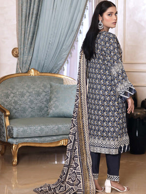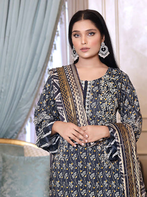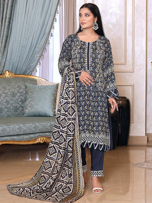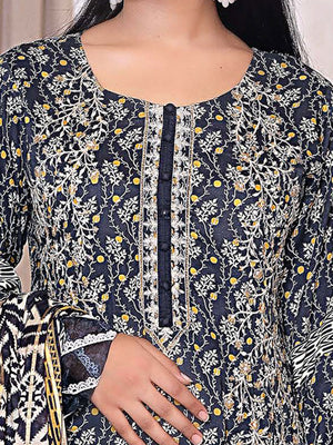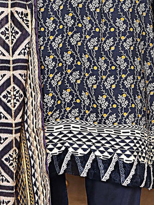 Munira Embroidered Winter Linen Suit (MSL-06) - Navy