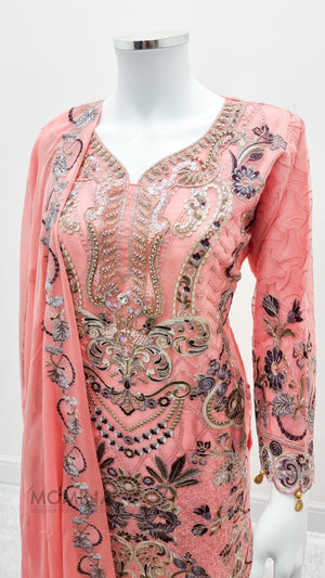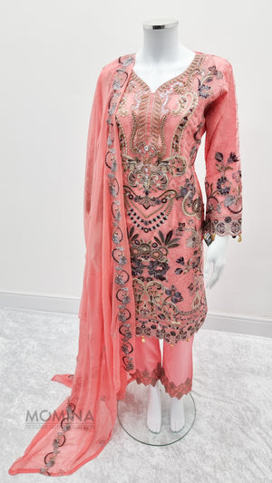 Pink Organza Embroidered 3-Piece Suit