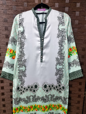 Printed Silk Kurta Shirt - Light Green
