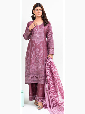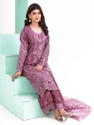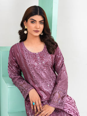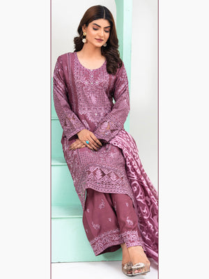 Rangz Fancy Embroidered Viscose Suit - Rouge Pink