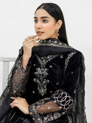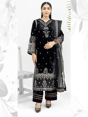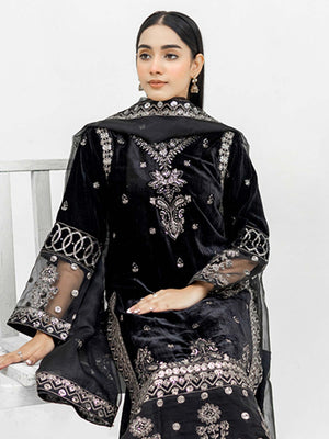 Home Rangz Velvet Embroidered 3-Piece Suit - Black